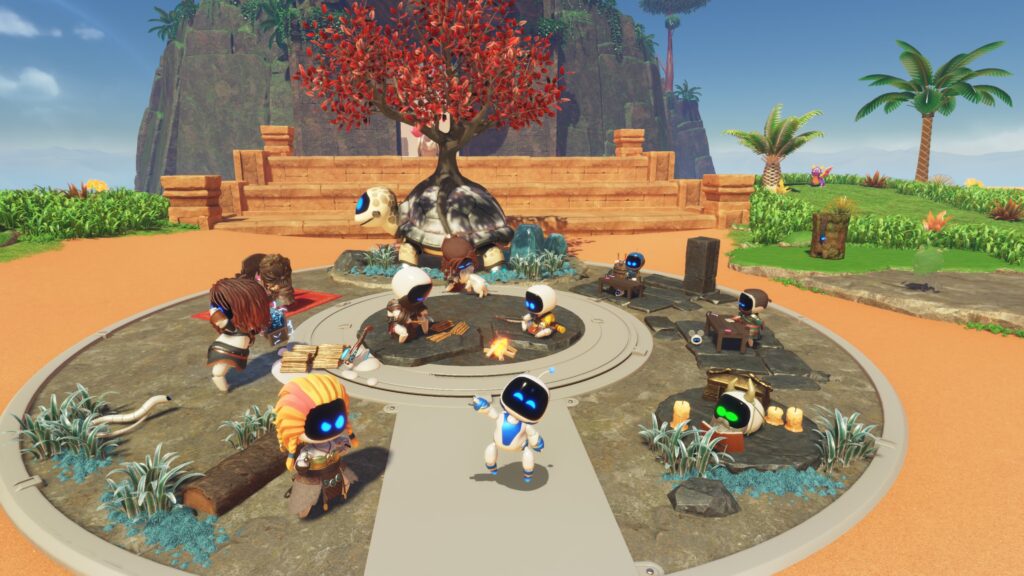 Astro se embarca en una misión para rescatar a sus compañeros bots perdidos en seis galaxias distintas. Aunque el juego no tiene una narrativa compleja, cumple perfectamente como un hilo conductor simpático y encantador para toda la aventura. No se enfoca en contarte una historia profunda, sino en rendir un homenaje a la historia de PlayStation, tal como lo hizo Astro’s Playroom.