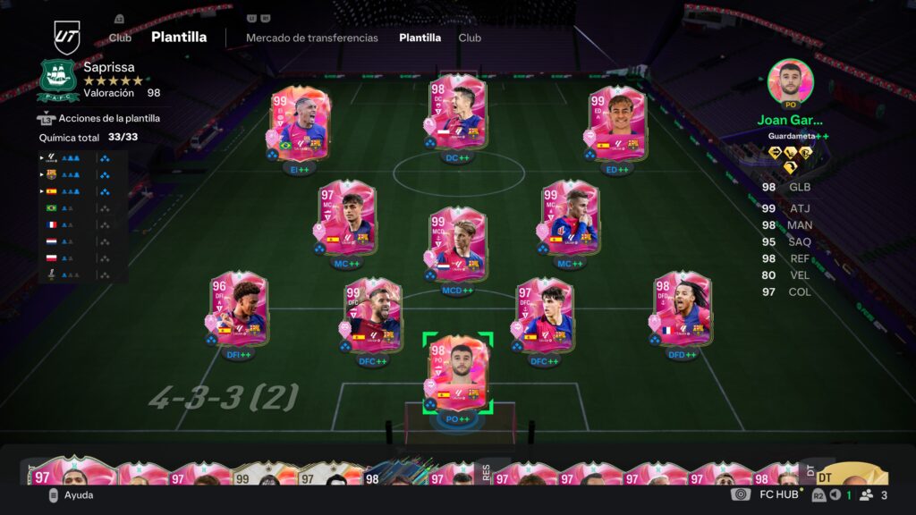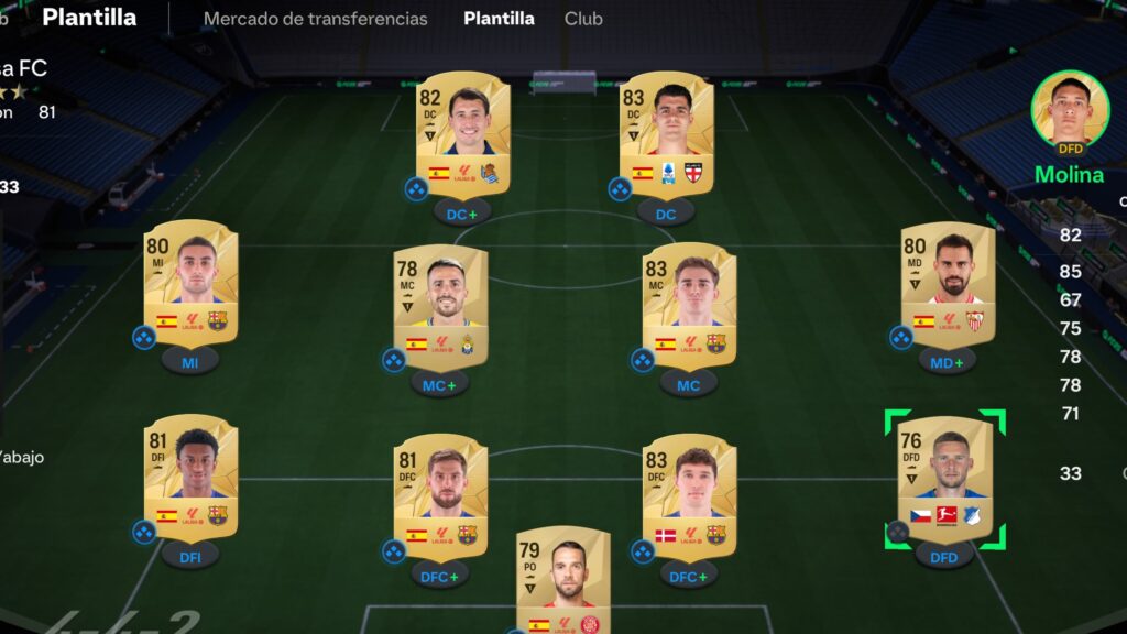 En cuanto al concepto general del modo, sigue funcionando mediante un sistema de cartas de mejora progresiva: bronce, plata, oro y cartas especiales. El objetivo es claro: construir un equipo de élite, utilizando únicamente jugadores reales, uniformes reales y estadios oficiales. No se puede diseñar tu propio escudo, uniforme o estadio, lo cual limita considerablemente la creatividad del jugador.