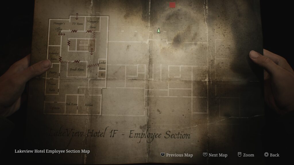 Luego llegas al Hotel Lakeview y aquí mejora la experiencia, hasta cierto punto, porque si bien ahora el ritmo es distinto, hay más puzles. Lo peor es que cada zona se siente muy estándar y con el mismo objetivo: un objeto central que básicamente te permite avanzar de zona. Para desbloquearlo, debes dar mil vueltas por toda el área para encontrar una llave o un código. Un código que abre un candado a una llave, la llave abre un lugar donde obtienes otro código, y así sucesivamente. La idea es siempre la misma. Y una vez consigues todo, resuelves un puzle para que salte otro puzle y listo: avanzas. Súmale el hecho de dar mil vueltas por el mapa y verás lo cansado que se vuelve. El juego se siente alargado para justificar su precio y que no sea tan rápido de terminar, pero esta no fue una buena manera de hacerlo. Simplemente, la jugabilidad se vuelve exhaustiva, al punto de que en mi caso tuve que tomar descansos porque abrumaba demasiado.
